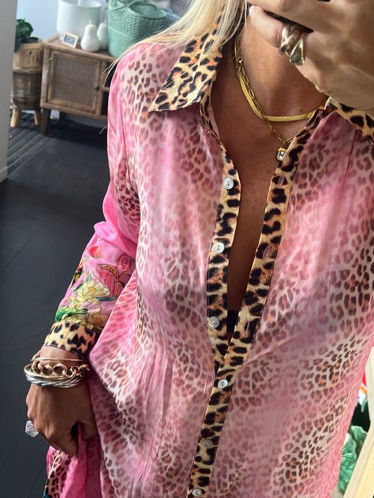 Slinky Resort Shirt Dress -pink