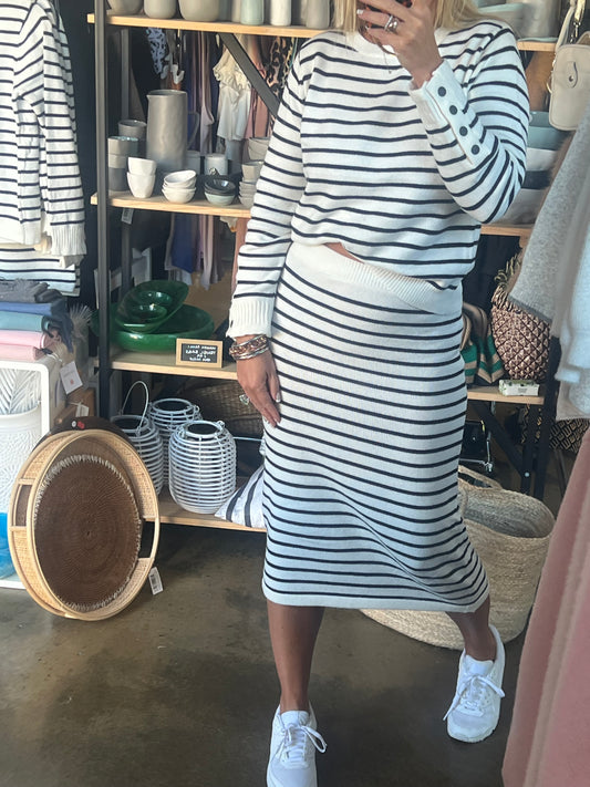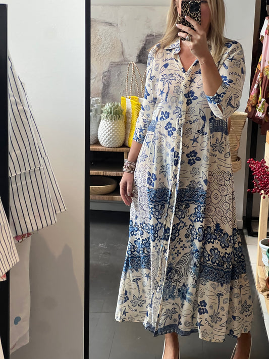 Stripe Long Sleeve Shirt Maxi Dress - Blue