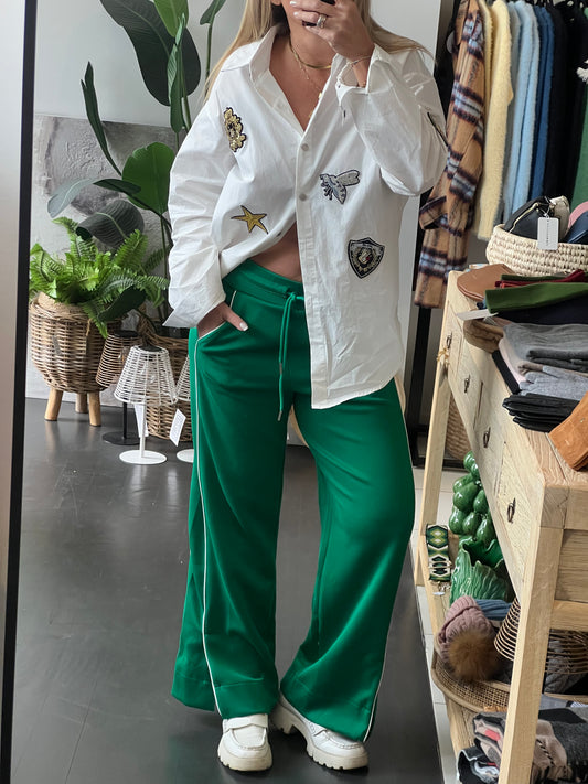 Stripe Cotton Shirt Dress Neon Trim - Green