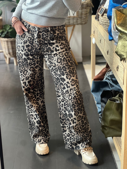 Leopard Jeans Wide Leg Pants - Light
