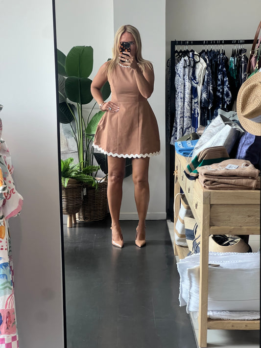 Ric Rac Mini Dress- Tan