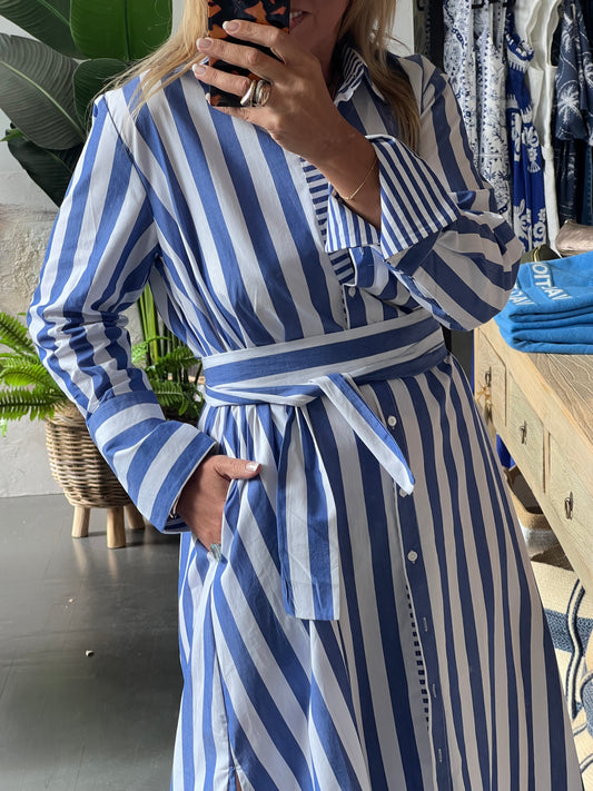 Stripe Long Sleeve Shirt Maxi Dress - Blue
