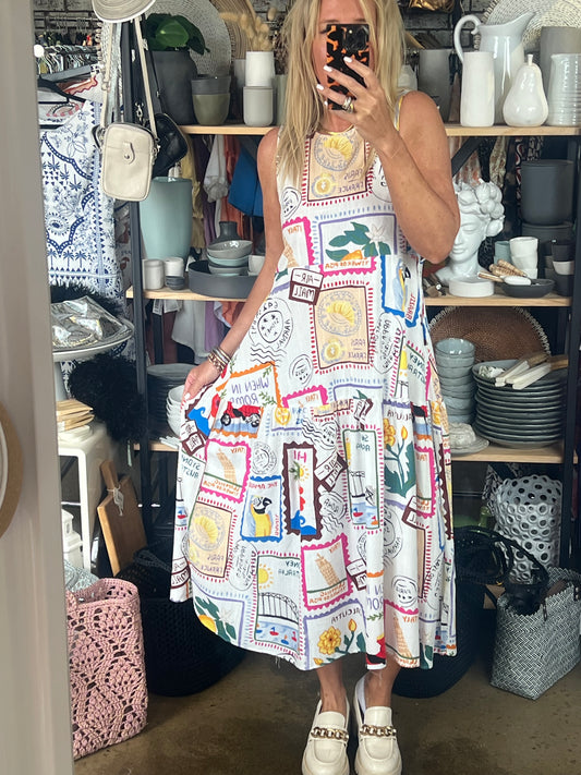 Postcards Sleeveless Midi Dress