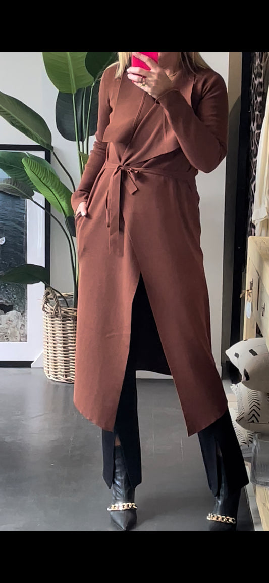 Milano Crepe Knit Cardi Coat - TOBACCO