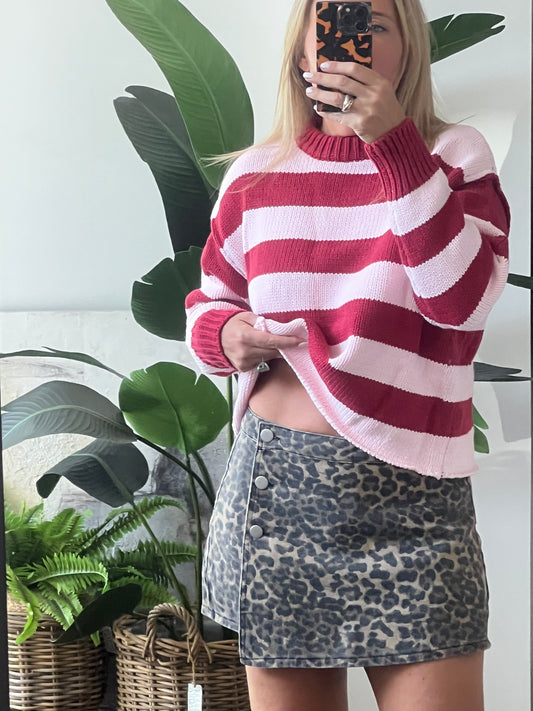 Chocolate Brown Stripe Ponti Pintuck Pant