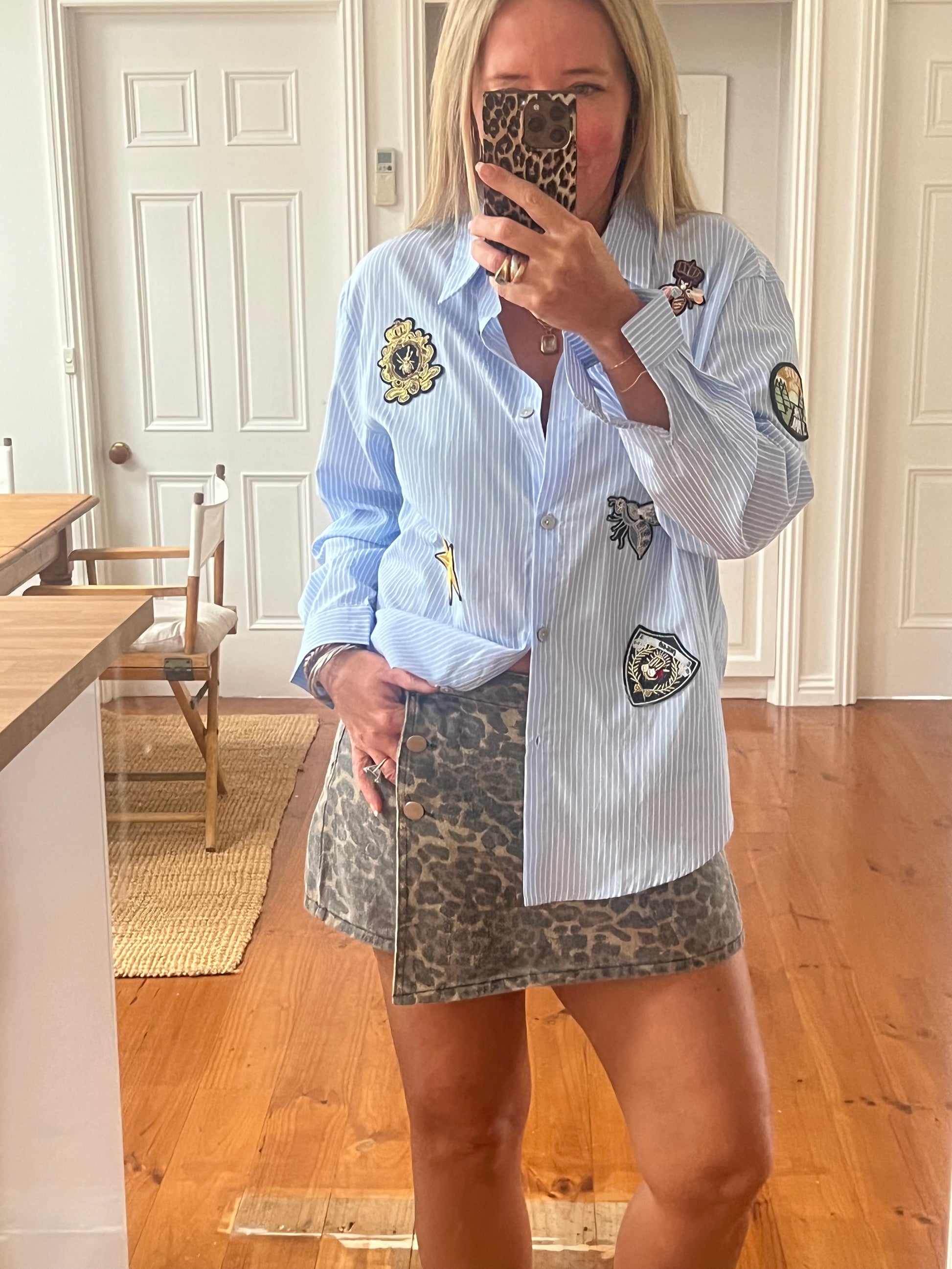 The perfect shirt for transeasonal styling. Featuring side slits which are great to twist tuck