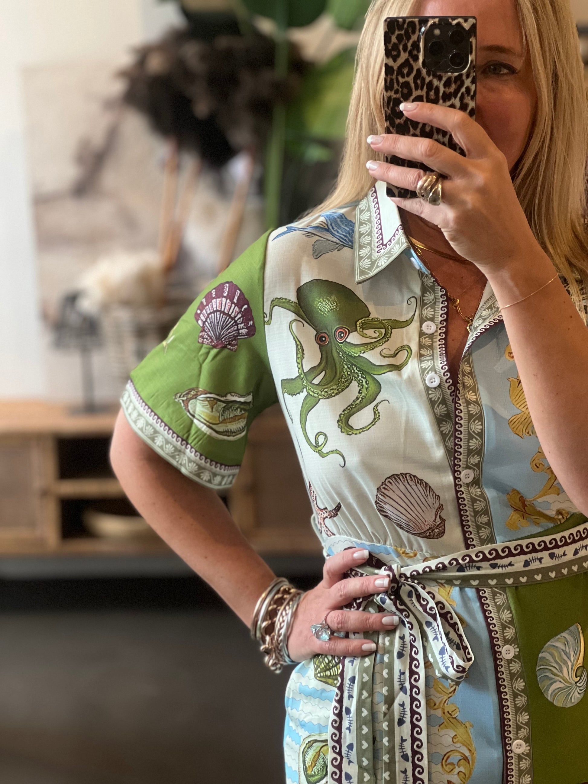 The fun flattering cut of this dress is complimented by the fresh summer print- and it has pockets!