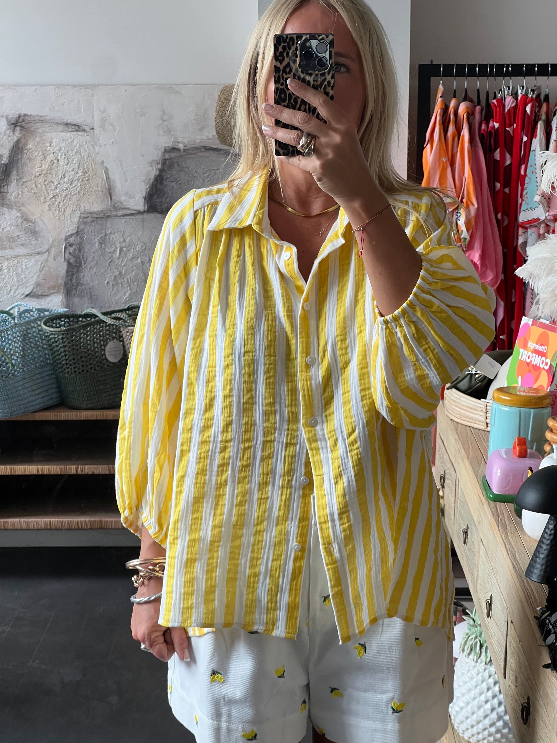 Relaxed Stripe Cotton Shirt yellow