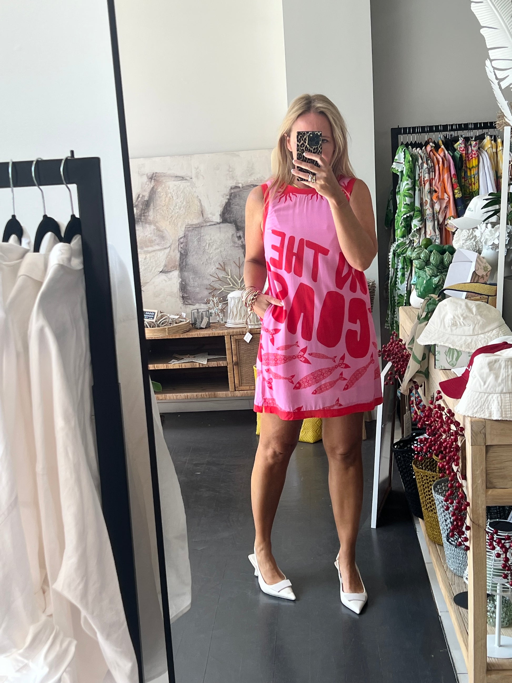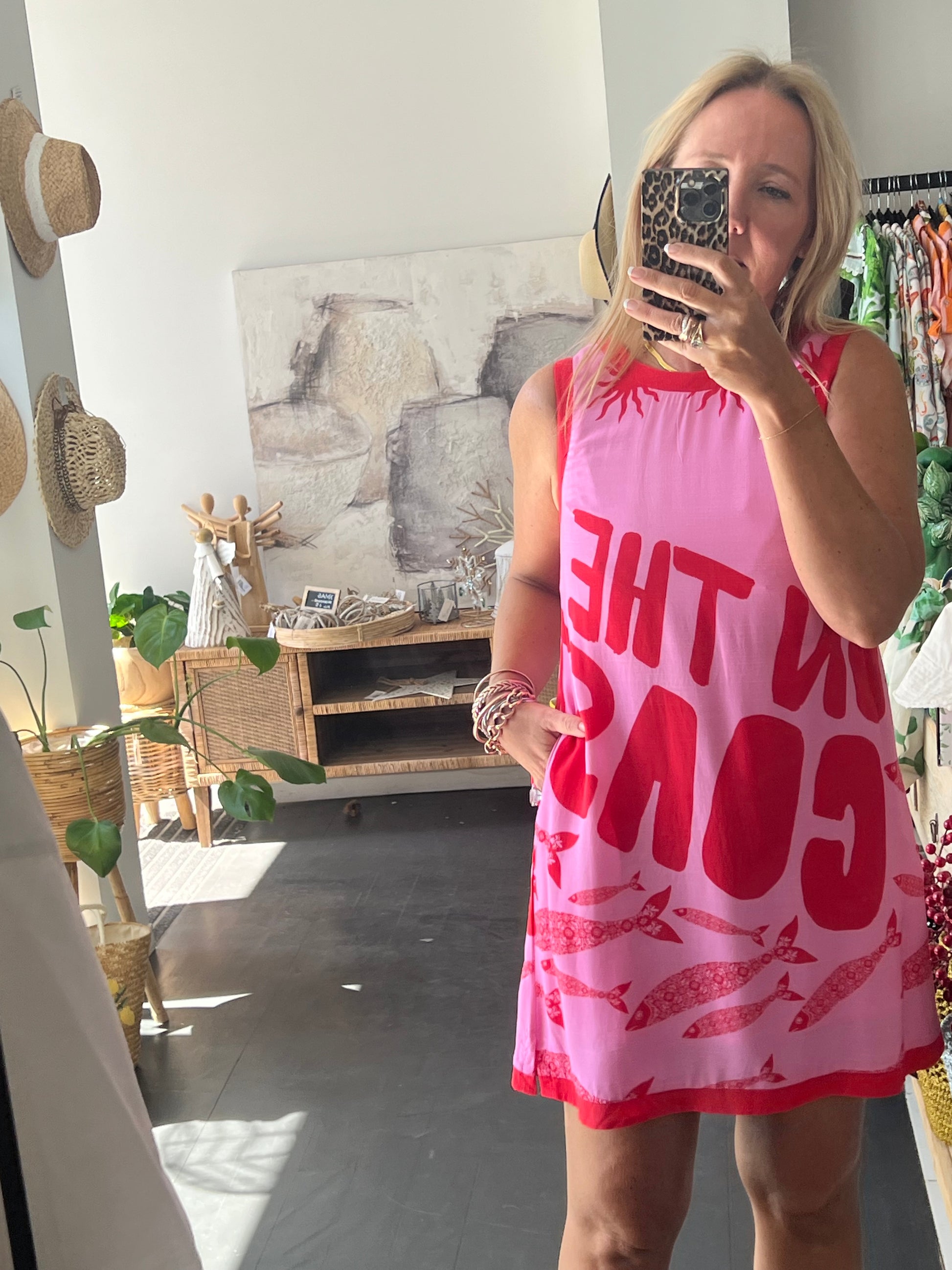 Featuring a relaxed sleeveless shift shape that is accommodating and completely flattering on all silhouettes