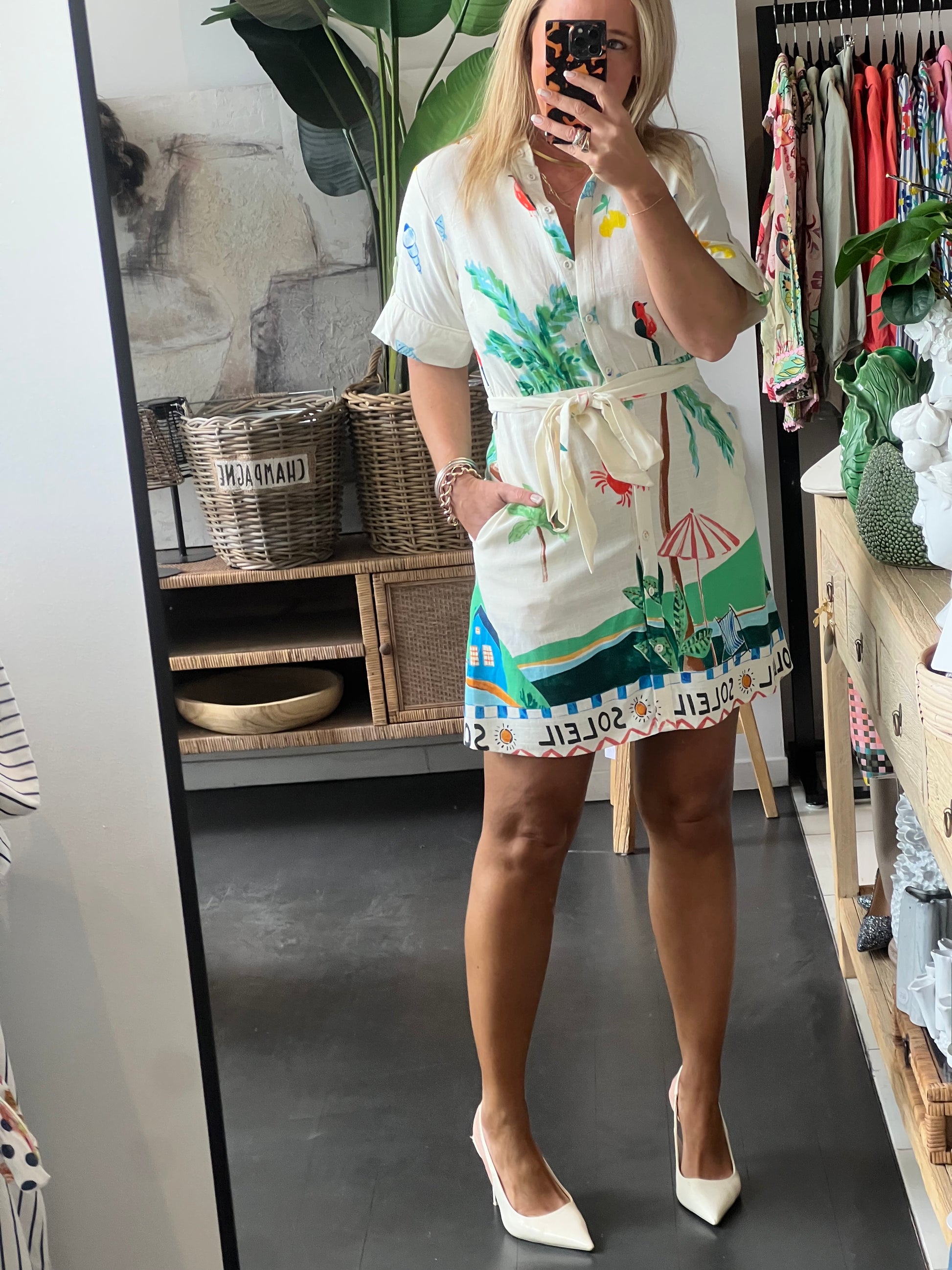 The feminine flattering cut of this dress is complimented by the fresh summer print- and it has pockets!